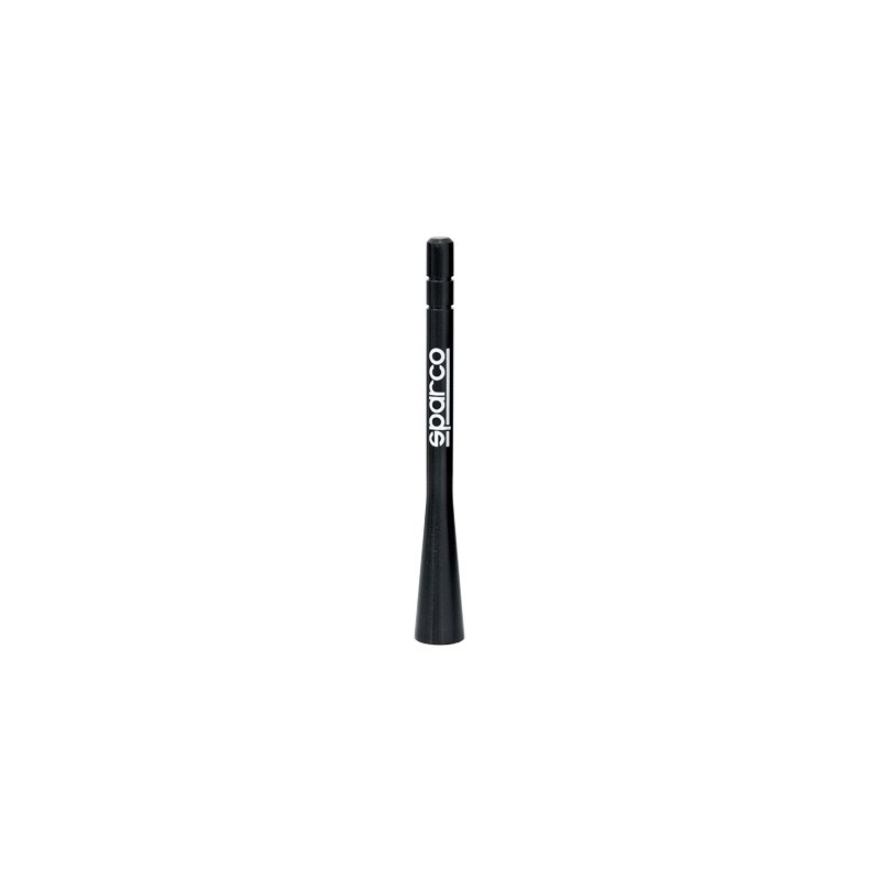 Magnifica Antena SPARCO Urban negra con el logo Sparco en blanco, escucha tus emisoras favoritas con la mejor de las antenas.