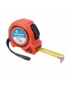 Cinta de acero endurecido, graduaciones métricas de fácil lectura. Cajetín de plástico resistente ABS con revestimiento exterior de goma para mayor durabilidad. Mecanismo automático para bloquear y retraer la cinta. Incluye correa para la muñeca y clip para el cinturón. Grado de precisión: Clase II.