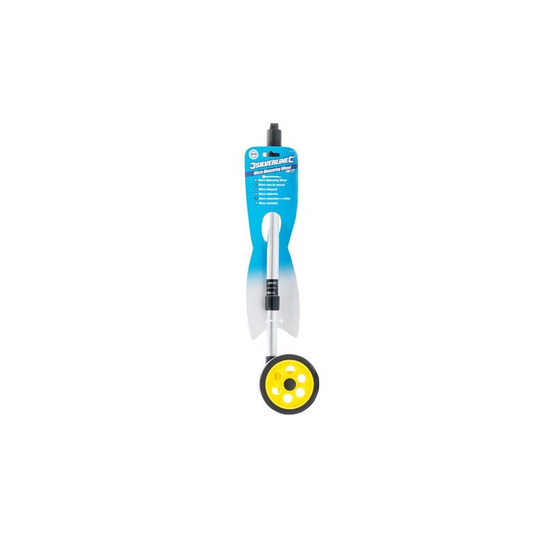 Fabricado en aluminio, rueda de plástico. Medición de 0 - 999,9 m. Mango telescópico extendible entre 350 y 810 mm. Mango resistente con estrías para un mayor adherencia. Indicador métrico de fácil lectura con una precisión de + / - 2 %.