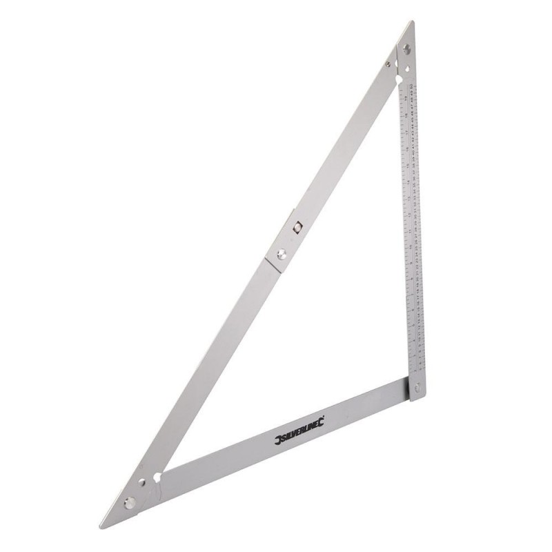 Escuadra de aluminio ligero de alta calidad con marcas métricas e imperiales. Mecanismo de bloqueo para asegurar ángulos precisos de 90° y 45°. Se suministra con bolsa de transporte protectora.