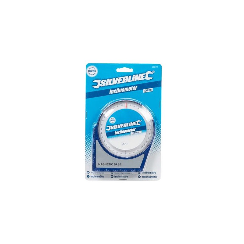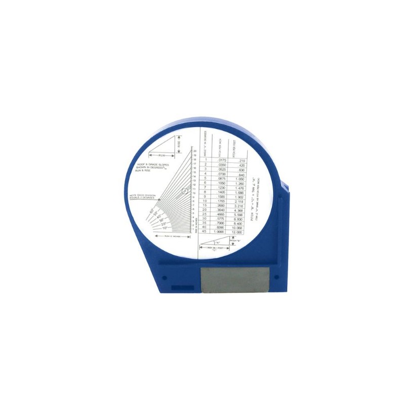 Inclinómetro para determinar niveles y ángulos de inclinación. Carcasa de plástico resistente de 100 mm de diámetro con base magnética. Indicador dividido en cuadrantes de 90° de fácil lectura. Indicado para medir la inclinación en techos, andamios, etc.