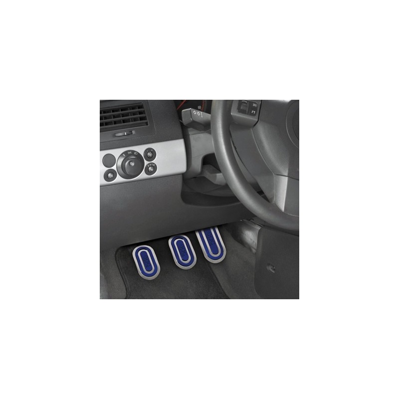 Juego de 3 pedales marca SPARCO en acero y goma azul válido para coche de cambio manual, dando una apariencia más deportiva.