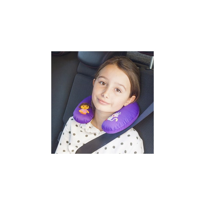 Almohadilla cervical DORA LA EXPLORADORA en color morado con un gracioso dibujo de Dora y Botas, un cojín muy cómodo que además facilita el sueño de los más pequeños manteniendo la cabeza recta para no coger malas posturas. De tacto suave y fácil limpieza.