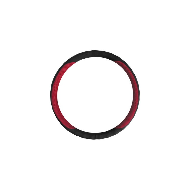 Protege el volante original de tu vehículo con esta funda de volante negra y roja 100% poliester, universal y lavable.
