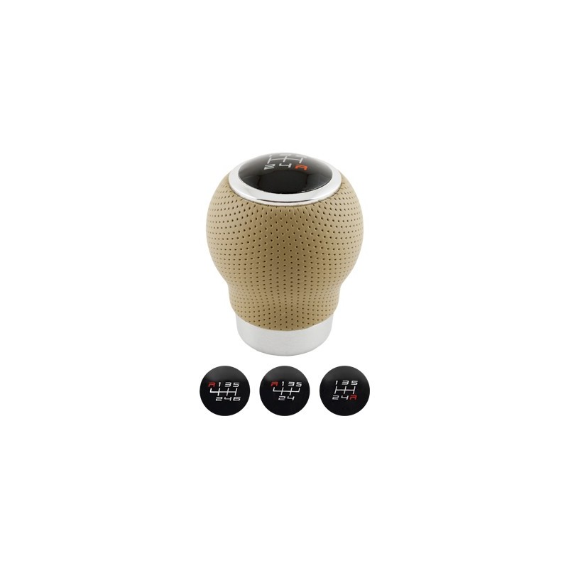 Fantástico pomo de cambio de marchas BC CORONA OEM de piel beige con gatillo de marcha atrás de 27 mm. de diámetro. Disfruta la comodidad de un pomo totalmente deportivo.